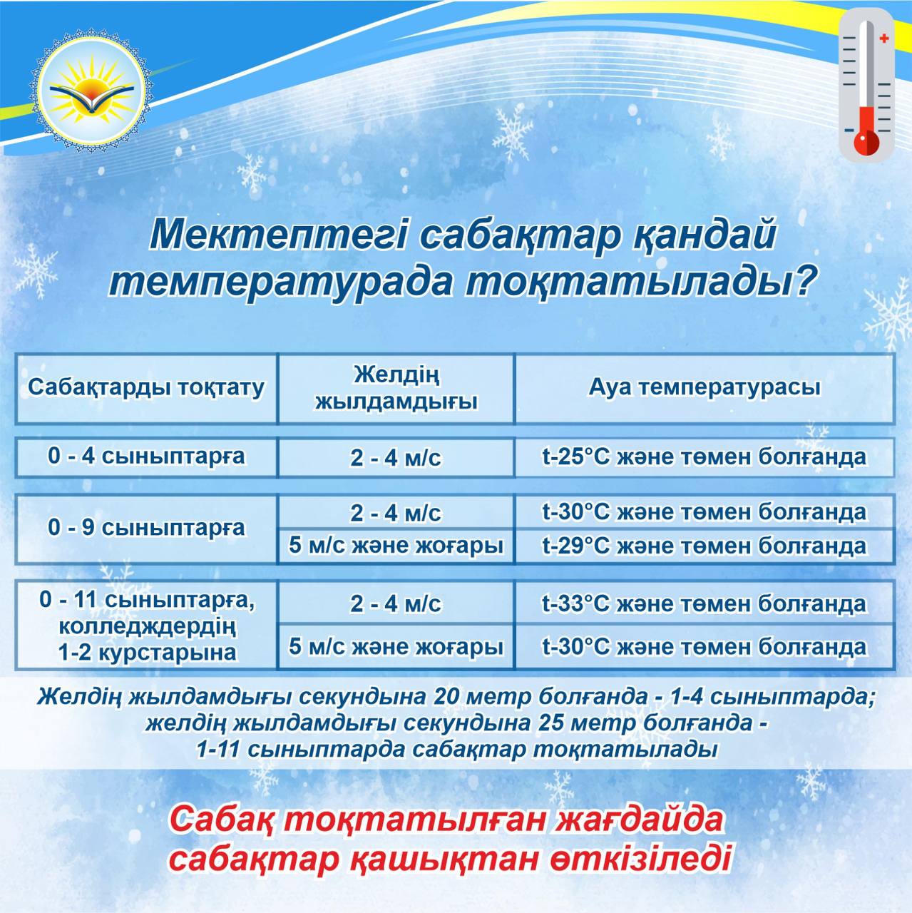 Ауа - райының қолайсыздығына байланысты ата - аналар мен оқушылар назарына!